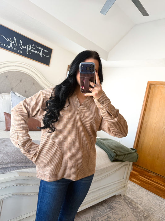 super comfy and versatile! this is something you can dress up or down depending on your plans. definitely a fall staple and a shirt that’s not too plain but gives just enough color!