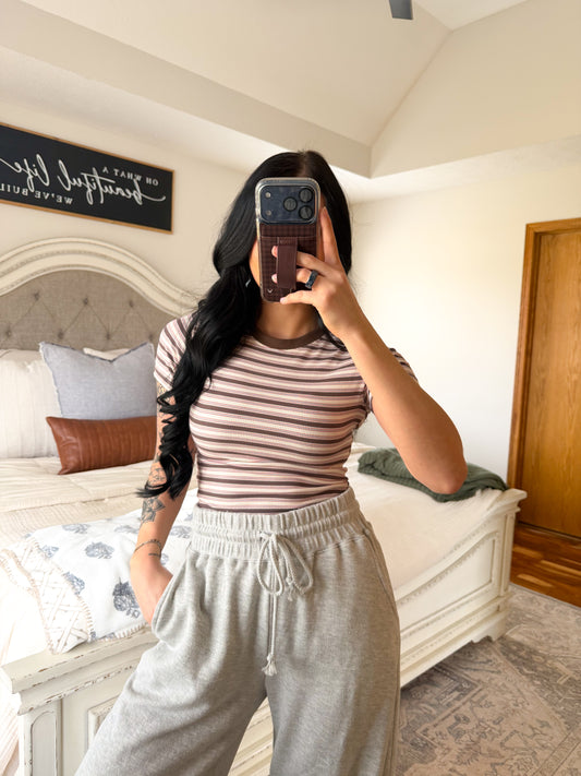 Striped Baby Tee- Taupe