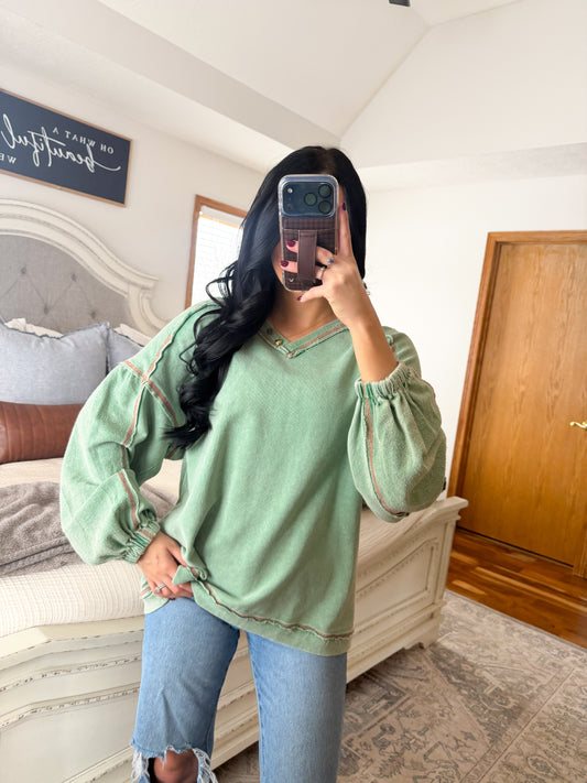 Mindy Mineral Washed Pullover- Green/Red