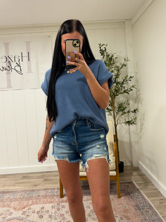 High Rise Distressed Shorts- Dark