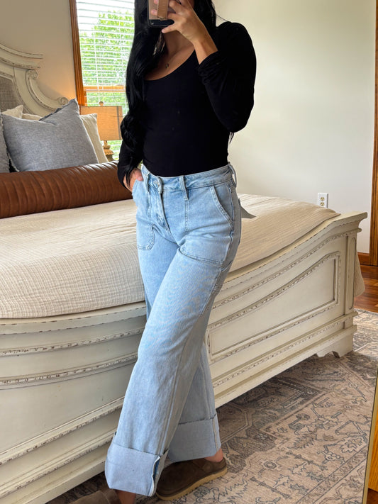 Sold outHigh Rise Cuffed Wide Leg Jeans