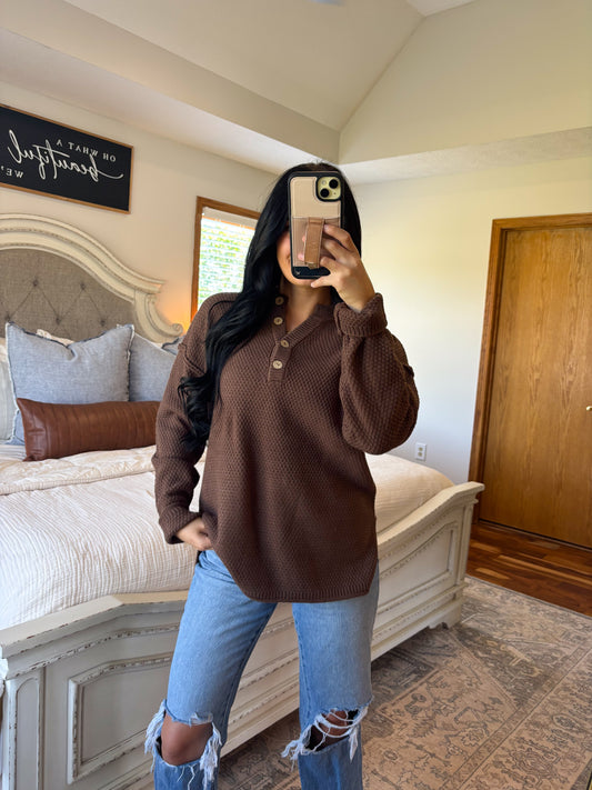 Sold outHenley Sweater- Chocolate