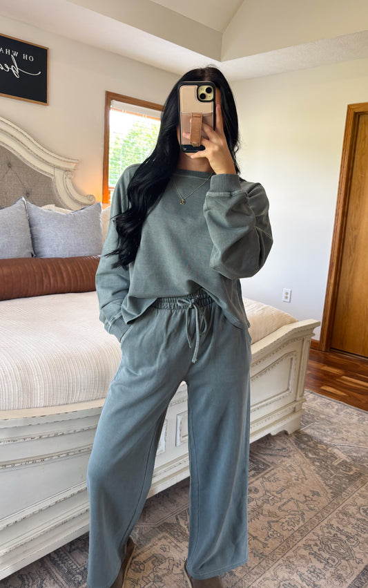 Sold outWashed French Terry Set- Ash Jade