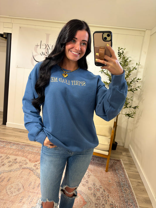 “Spirit Lead Me” Crewneck- Dusty Blue