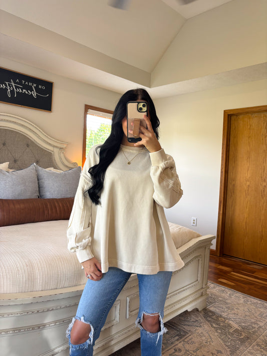 Cassidy Long Sleeve Ribbed Top- Lt Grey