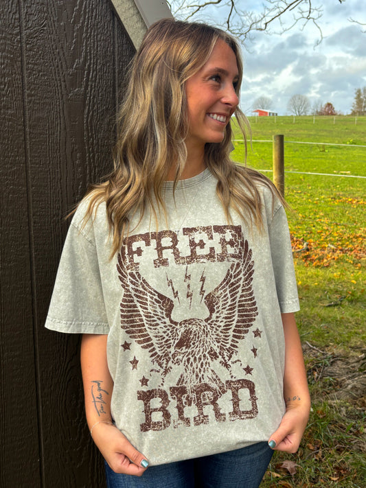 Free Bird Graphic Tee- Mocha