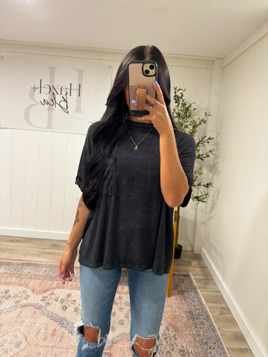 Relaxed Droopy Pocket Tee- Ash Black
