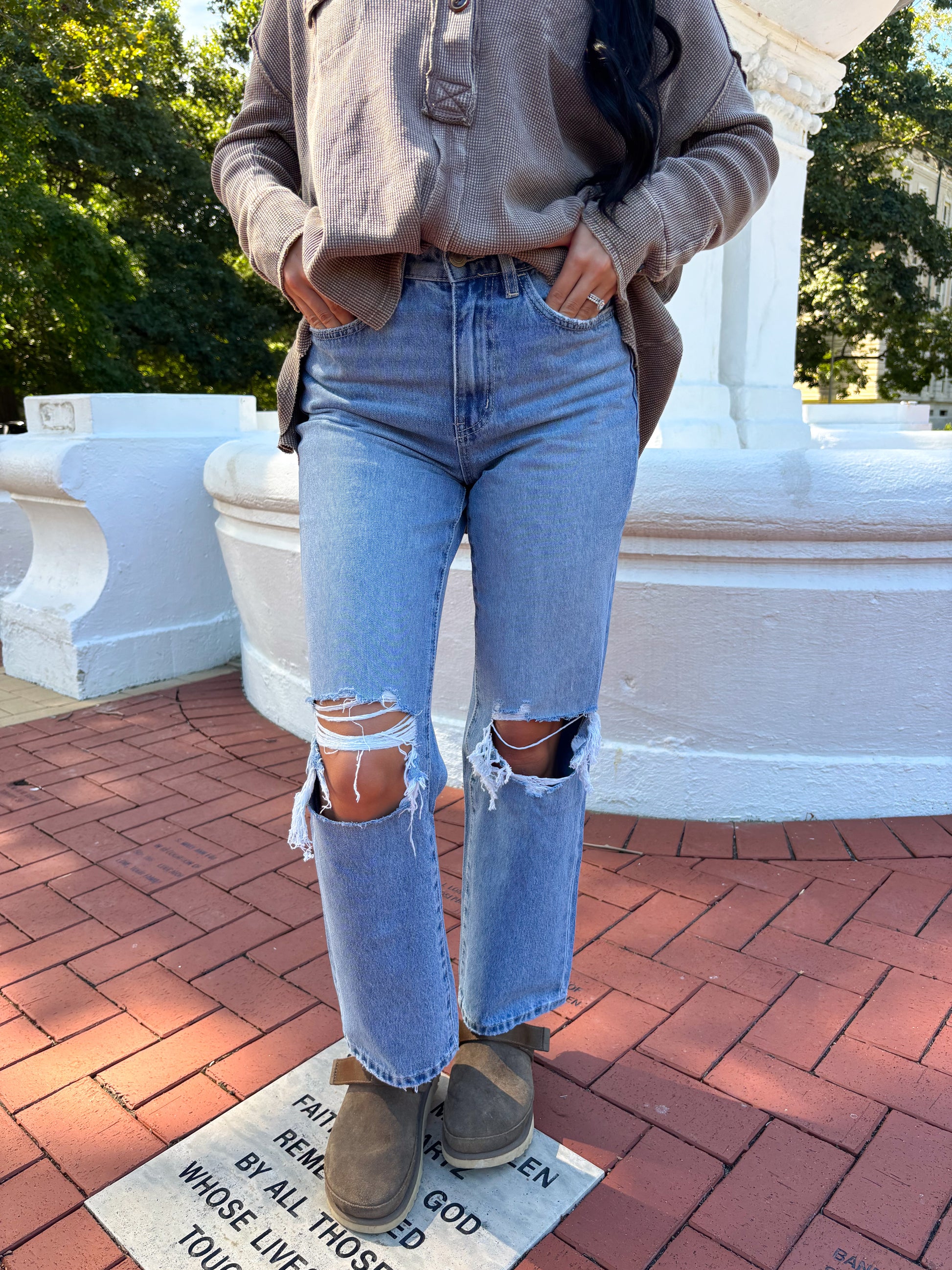 Introducing our 90s Super High Rise Dad Jeans - the ultimate blend of comfort and style! With a relaxed fit, no stretch material, and trendy distressed detail, these jeans are perfect for any casual occasion.