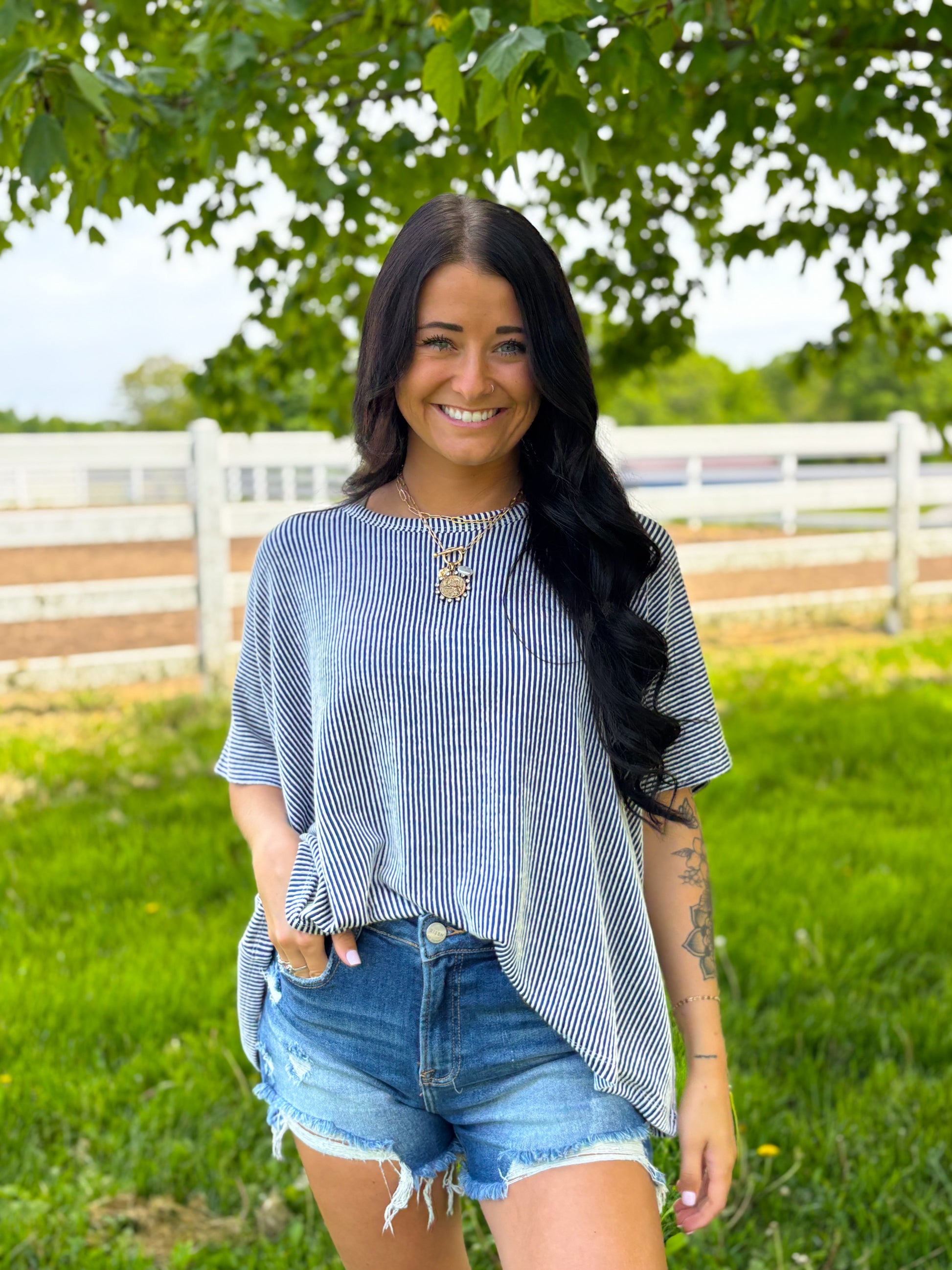 Cassidy Ribbed Top- Navy