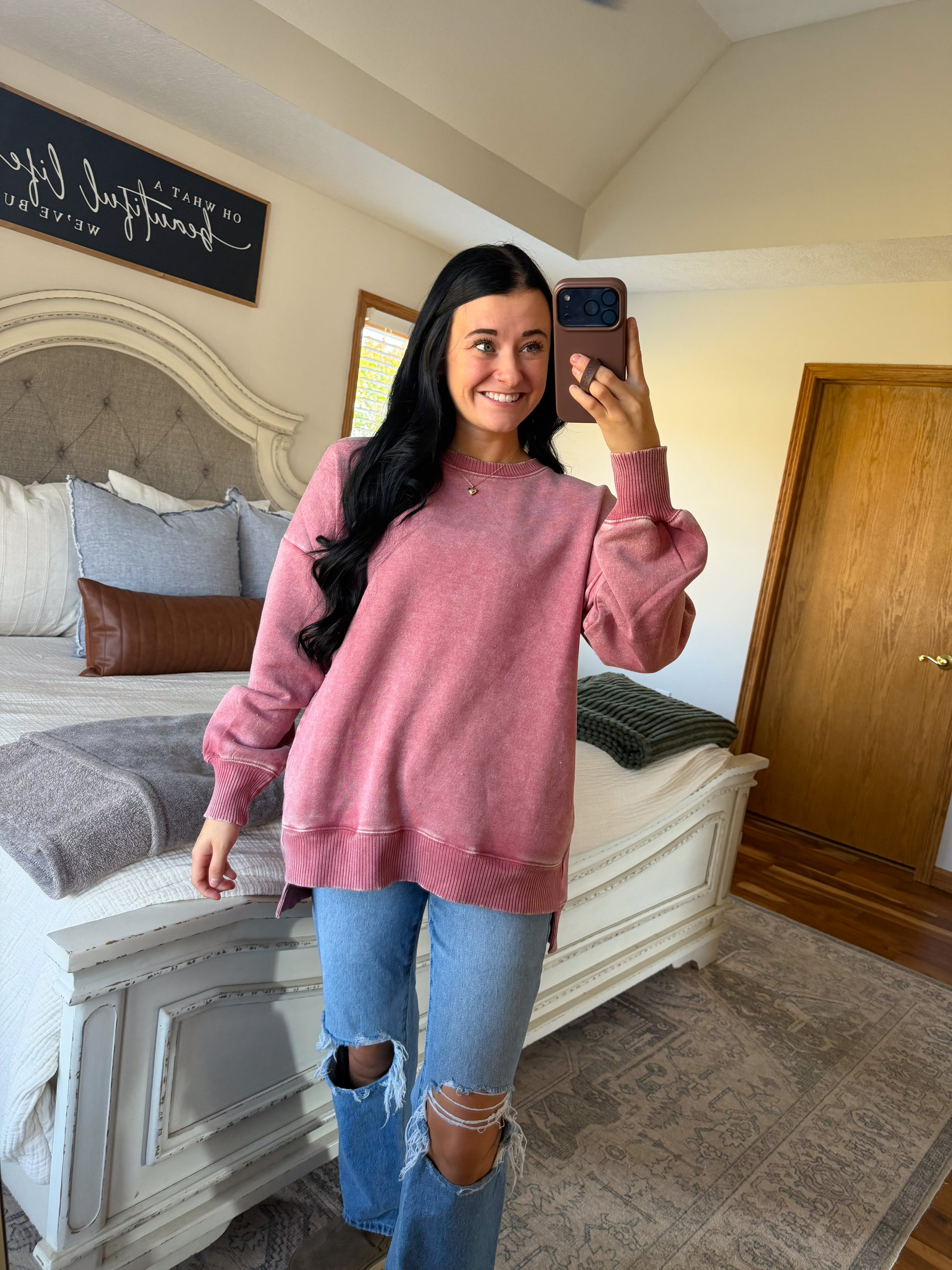 Ellie High Low Pullover- Rose