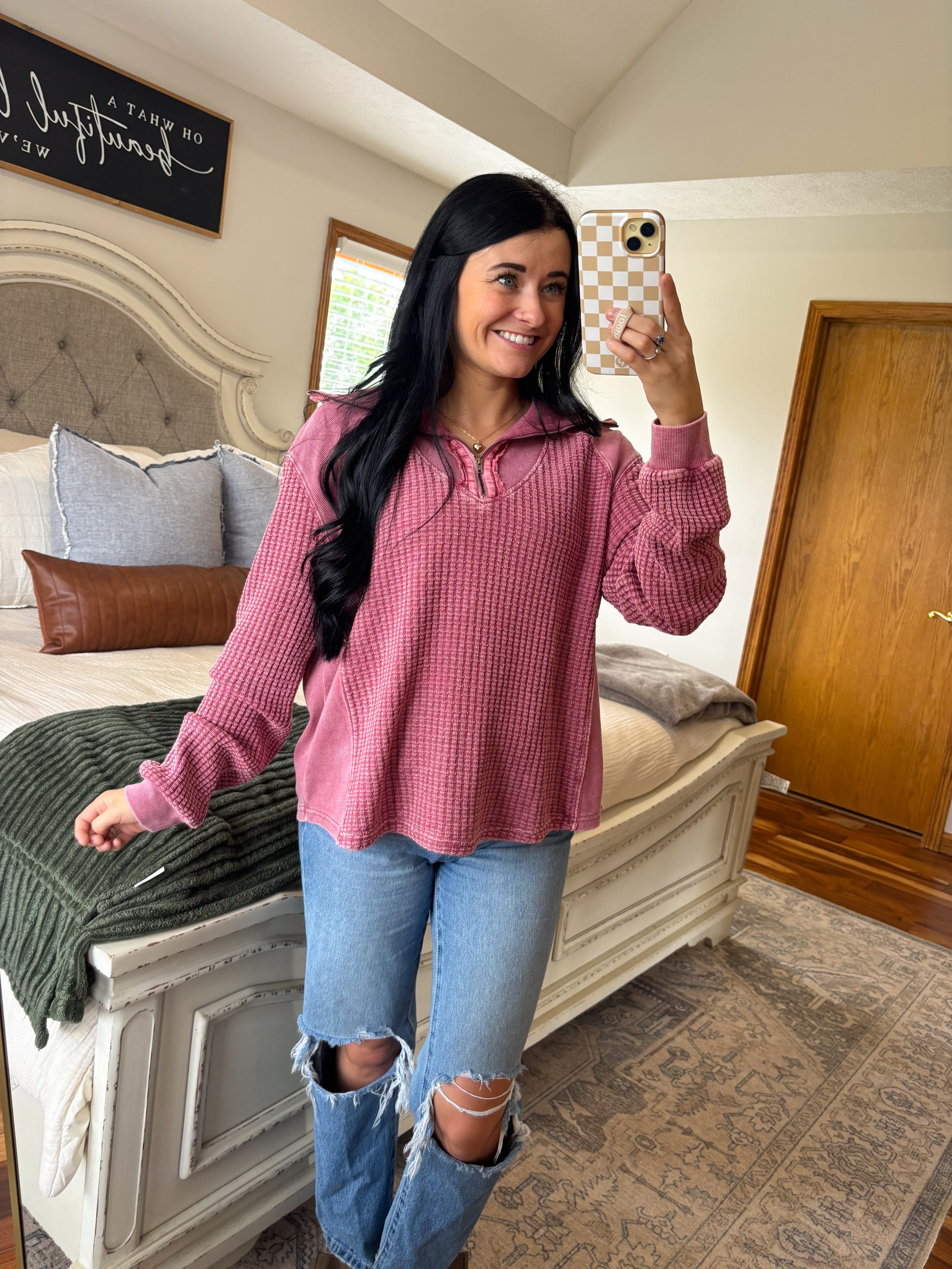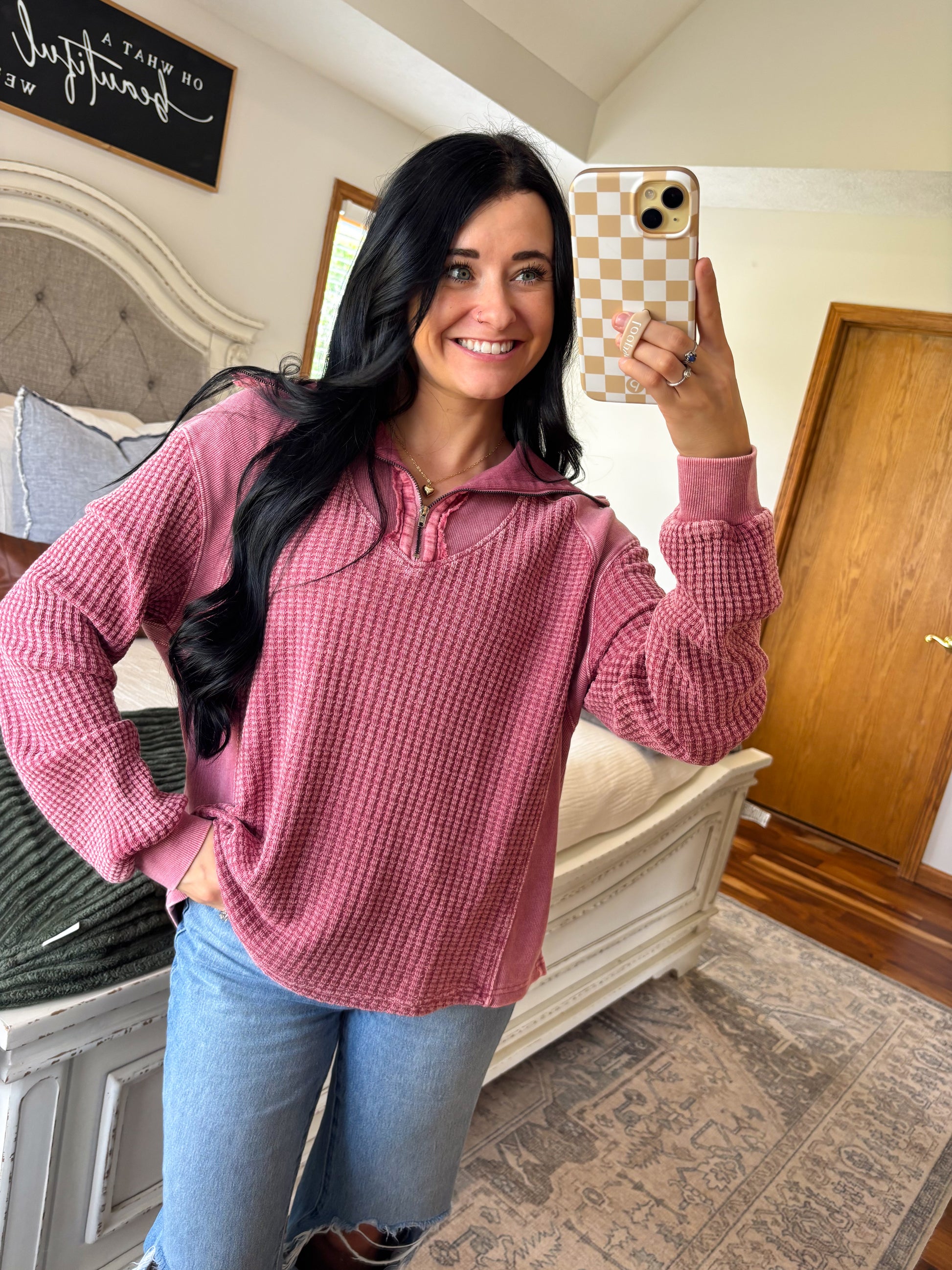 Stay warm and stylish in our Quarterzip Thermal Pullover! Made with a cozy waffle knit and mineral washed for a unique look, this pullover is perfect for any outdoor adventure.