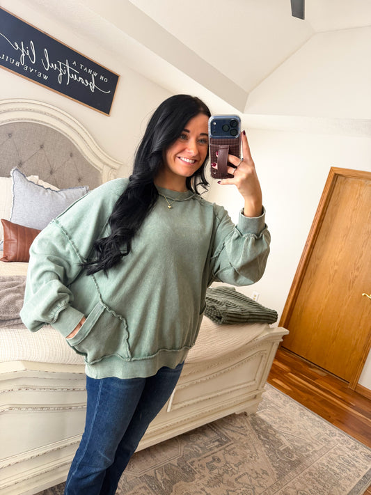 Mindy Mineral Washed Pullover- Green/Red